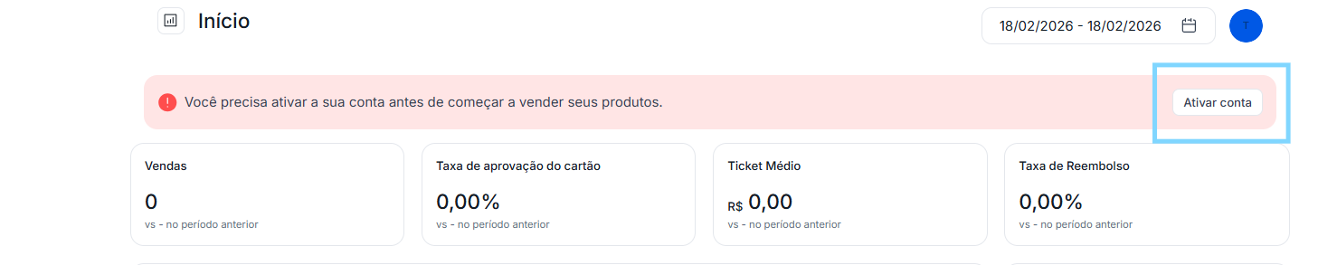 No menu principal da plataforma, você verá um banner informando que é necessário ativar sua conta.